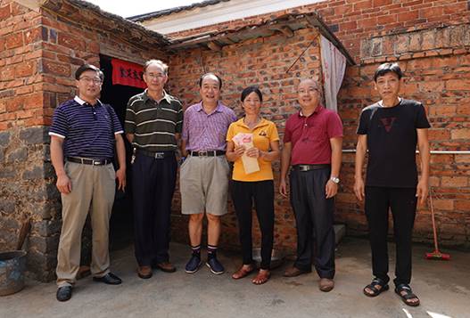 在南夏村委会,学院扶贫工作小组与学校扶贫驻村工作队队长植秀成以及村支委进行了深入座谈交流,随后一起前往扶贫对象洪秀娇家,现场研究决定对其房屋进行修缮的工作方案以及改善生活的措施。根据方案,学院扶贫工作小组将学院教职工捐款5000元作为扶贫对象房屋修缮费用,3600元改善生活条件,并请驻村工作队队长植秀成代为督促落实。