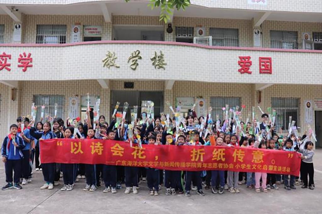 ,11月29日,英国上市公司365团委青年志愿者协会,组织30余名志愿者前往坡头区的“英国正版365官方网站学雷锋示范点”——黄桐希望小学,开展了“以诗会花,折纸传意”文化启蒙宣讲活动。