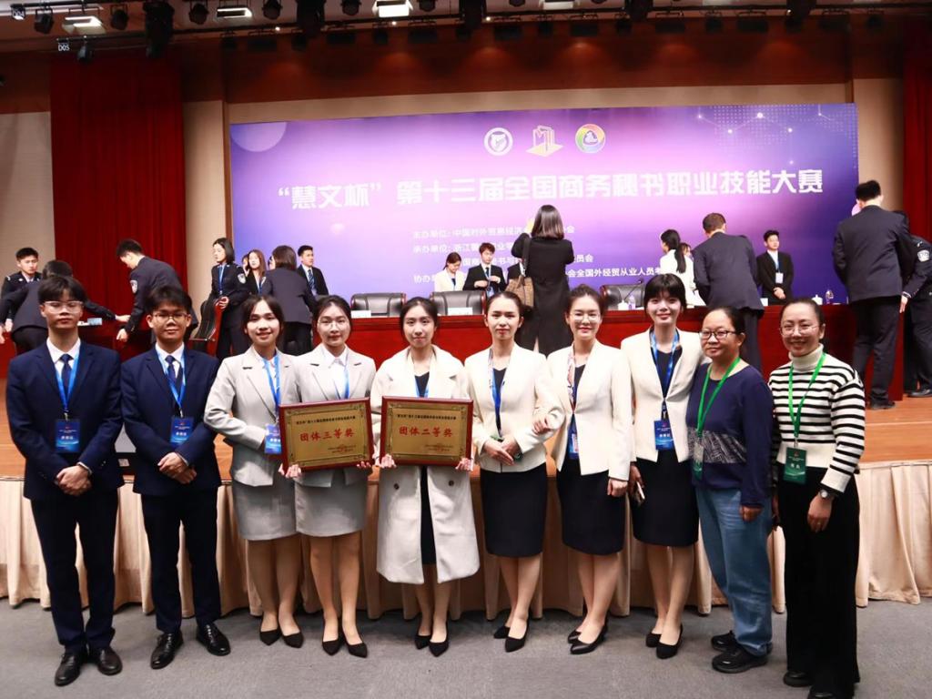 “慧文杯”第十三届全国商务秘书职业技能大赛于2023年12月1日至3日在浙江警官职业学院隆重举行。经过层层激烈角逐,英国正版365官方网站1队(欧金梅、赖宝茹、陈海玲、温烩梅)荣获本科组团体二等奖,英国正版365官方网站2队(吕姚、郭树林、周家露、黄颖瑶)荣获本科组团体三等奖。