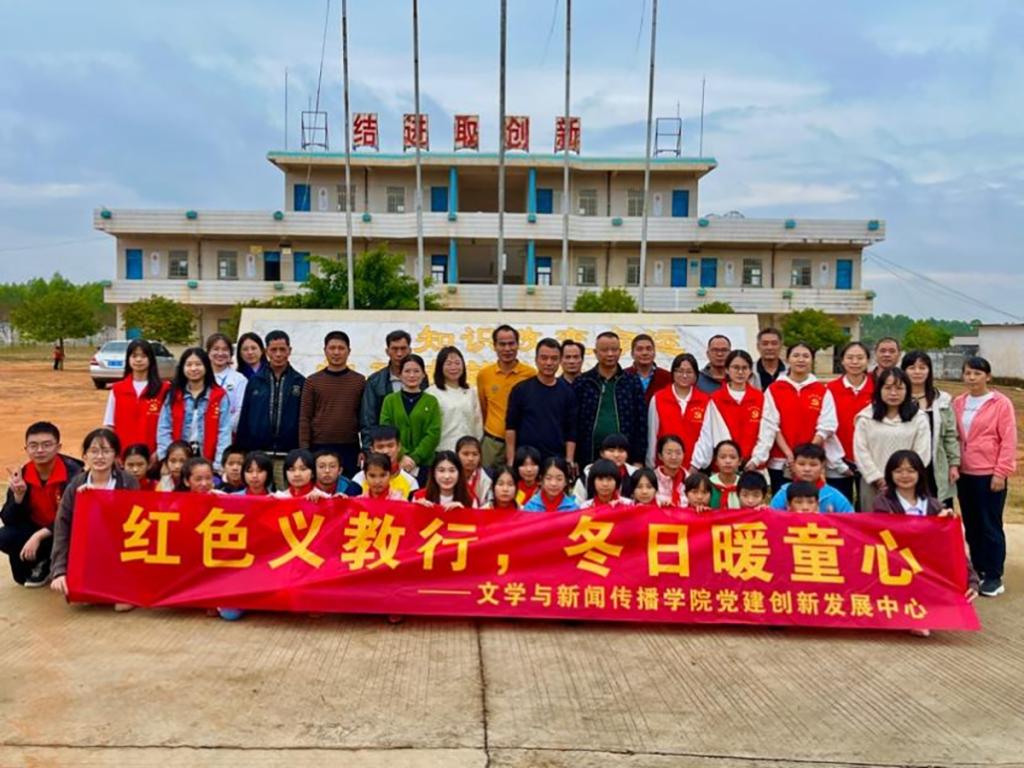 12月6日下午,文学与新闻传播公司党建创新发展中心等15名员工党员干部在莫春艳、林婉芳、吴思莹三位老师带队下,前往遂溪县河头镇割山小学开展主题为“红色义教行,冬日暖童心”义教活动。