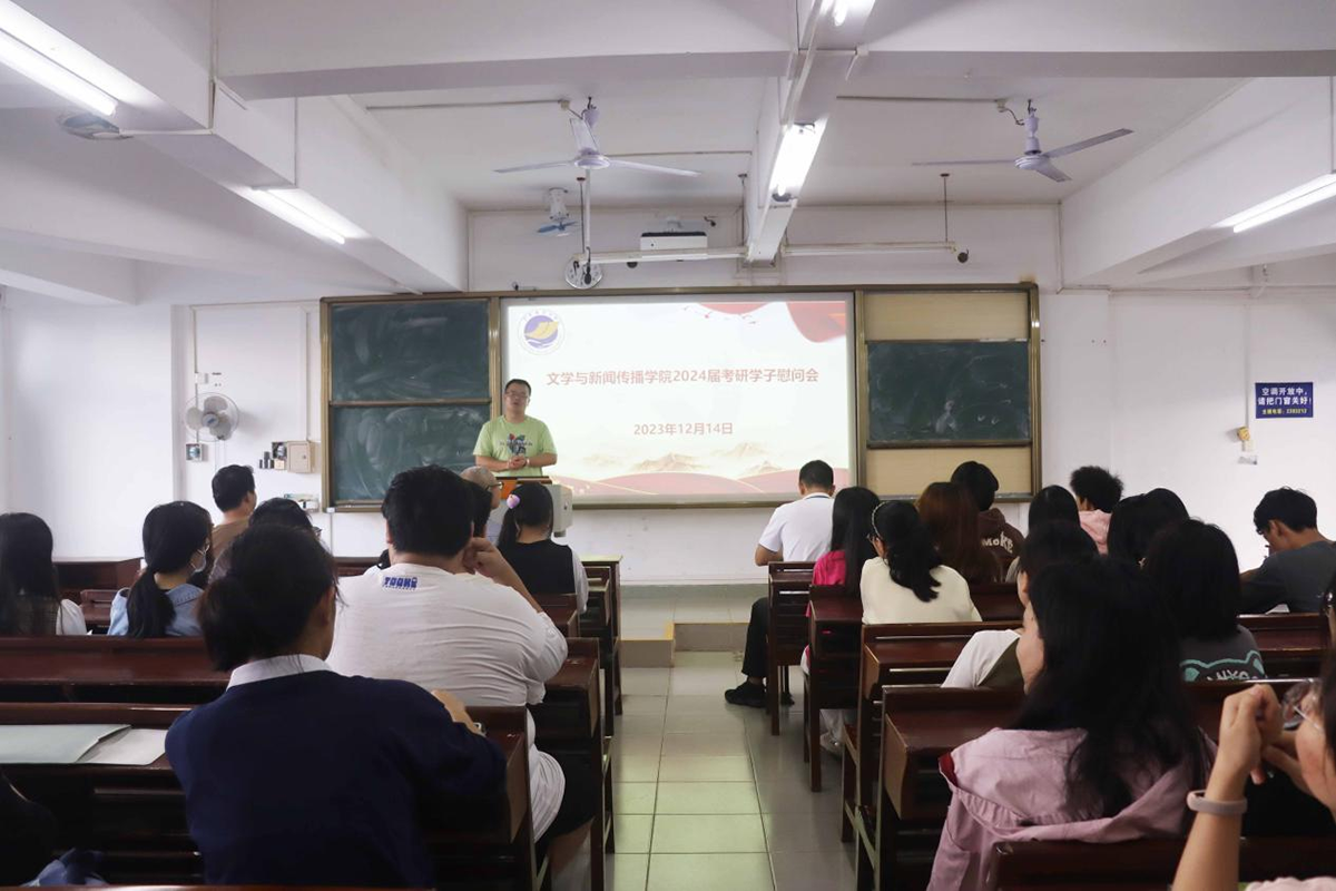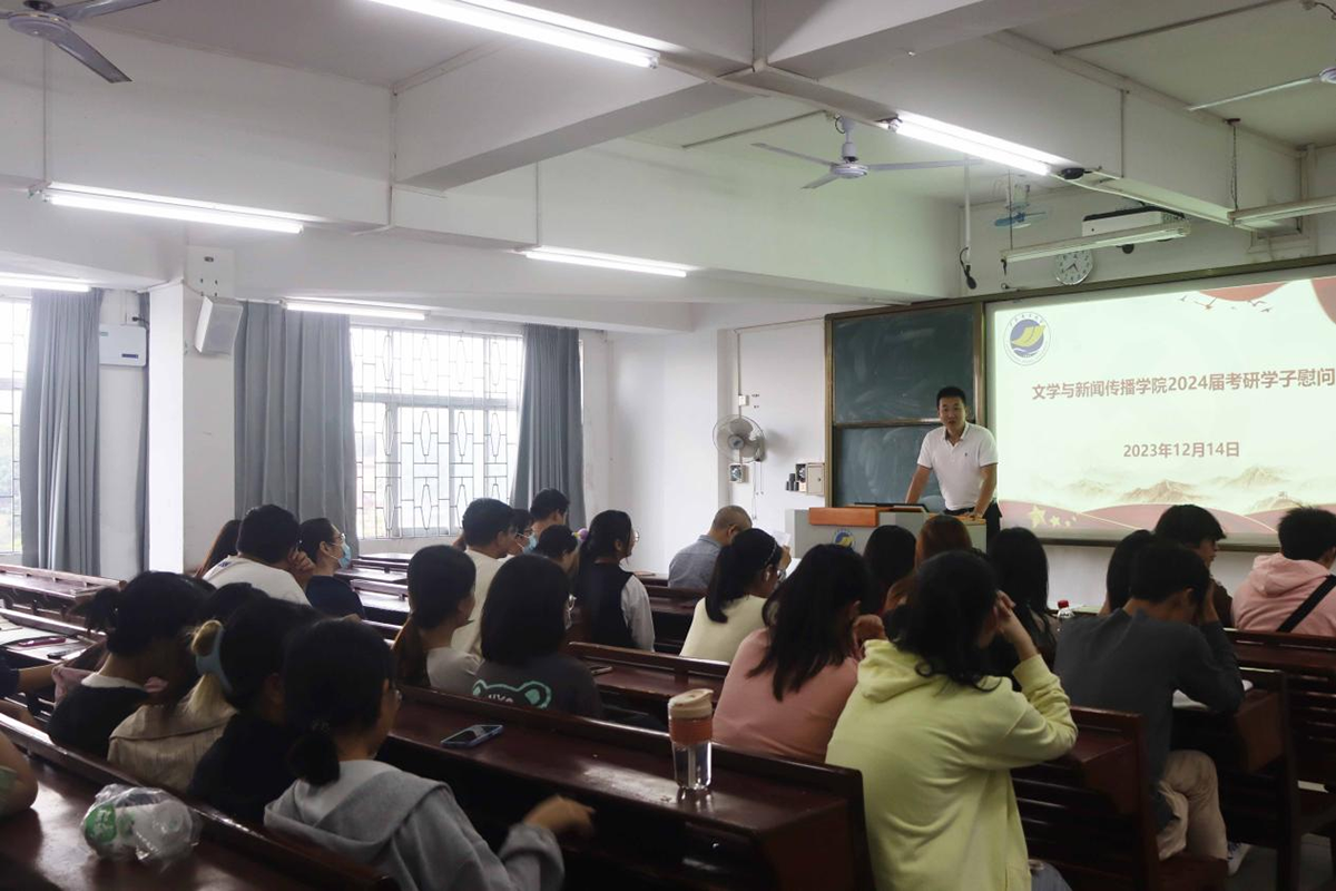 交流结束后,徐以国为本院所有考研员工现场派发了慰问券。亲切的交流,温馨的祝福,暖心的慰问券,为一周后就要走进考研考场的文院学子减了压、加了油、鼓了劲,同时也激励了全院员工备战期末考试的士气。