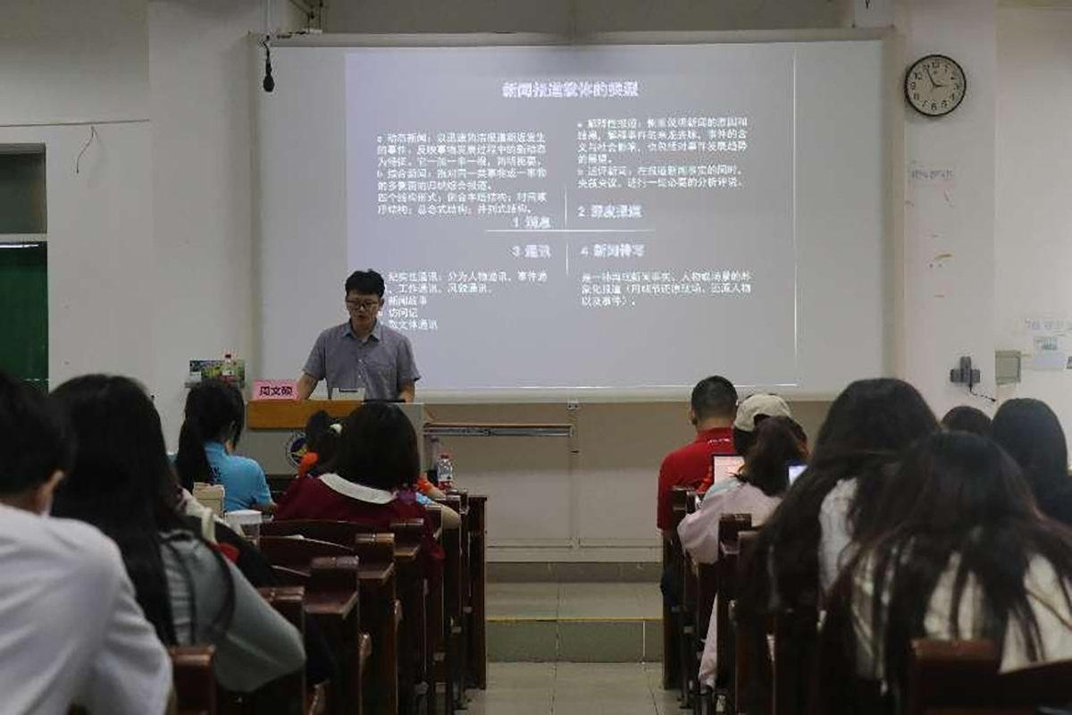 讲座以主讲人的获奖作品为例,突出了新闻采写中背景介绍、技巧运用和新闻事实挖掘的重要性,阐述了新闻要素交代、切入点寻找、采访走深做实、标题拟制、框架搭建和细节发掘等新闻采写的关键问题,分析了主次关系处理不当、语言不够简练、采访不够深入、报道不够客观等新闻报道的“常见病”,为师生带来了一场生动务实的新闻业务交流。