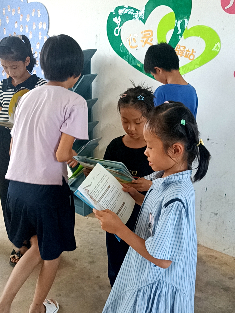 本次活动由学院“与你在一起”心灵驿站工作室师生牵头,党建创新发展中心和智媒体创新创业发展中心的同学共同参与。在工作室负责老师崔文婷带领下,志愿者们完成了“阳光心灵角”布置、心理知识宣传标语粘贴、“心灵树”员工党员寄语和心理绘本赠送等活动。孩子们通过在“阳光心灵角”阅读心理绘本、和工作室师生进行沟通交流等形式,释放心灵压力,得到正向引导。