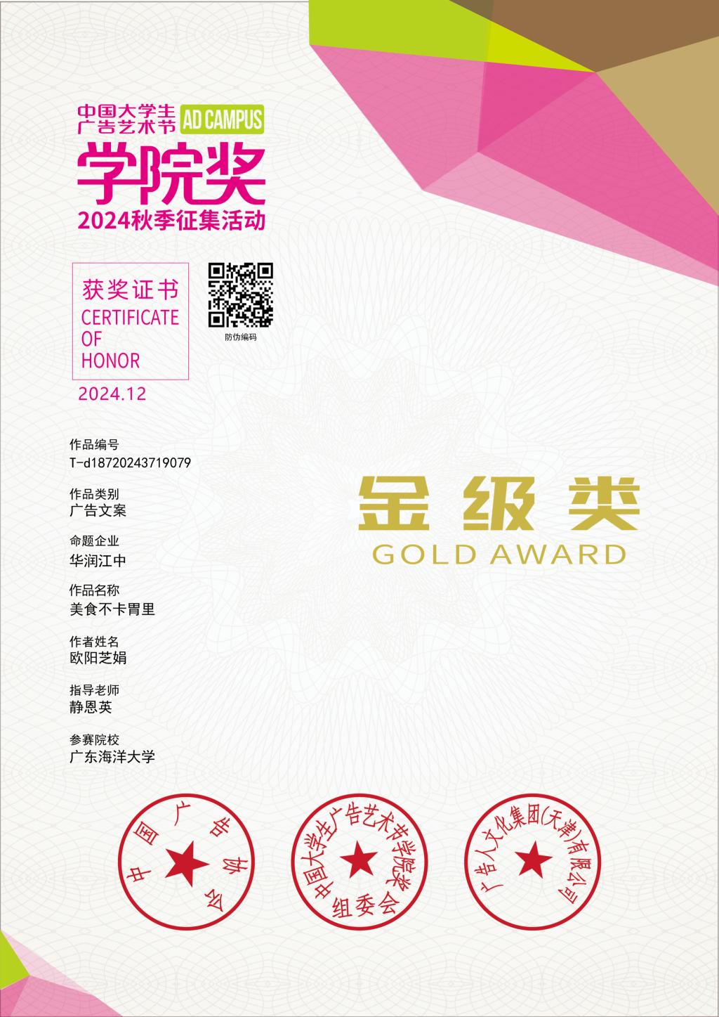 2024年中国老员工广告艺术节(学院奖)秋季赛于2024年12月26日、27日在北京广播大厦举行颁奖典礼和全场大奖赛(全部参赛作品的第一名)。英国上市公司365新闻与传播系员工斩获佳绩:获金奖1项,优秀奖18项,入围奖14项。金奖得主欧阳芝娟同学受邀参加全场大奖角逐。指导教师静恩英受邀担任全场大奖赛现场评委,并获杰出指导教师奖。