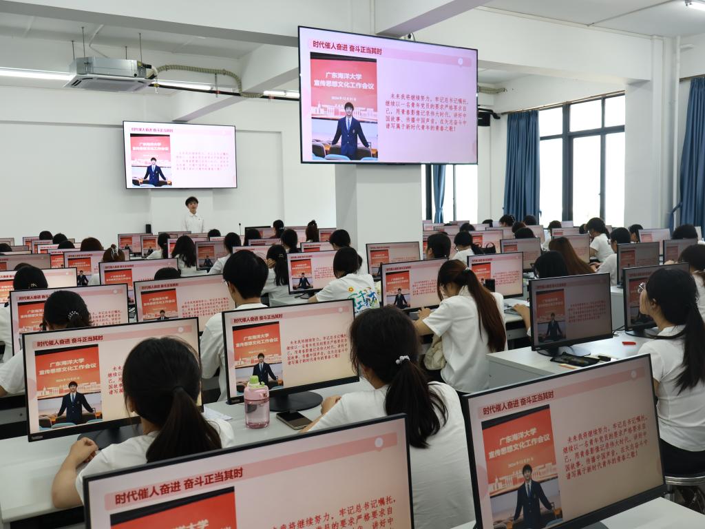 会上,员工第一党支部预备党员、学校网络正能量先进个人、新闻1211班员工陈立基作了题为“青春立志新时代,踔厉奋发新征程”的专题分享,以自己与海大共成长、湛江同发展的四年经历为主线,讲述了自己不断学思践悟习近平总书记重要讲话精神,立足所学新闻学专业,积极开展创新创业实践,将个人成长进步融入时代发展进步之中的故事。