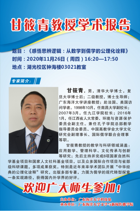 甘筱青教授学术报告预告