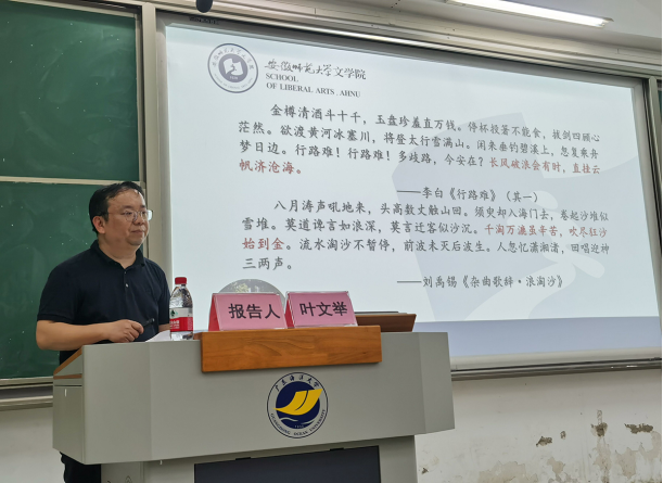 叶教授的报告,结合自己古典文学、秘书史、公文写作的研究经验和成果展开,从文学性的传统影响、文风改革的现实需求、继承传统文化的内在表现等多个方面,强调了古典诗词在公文写作中的重要性。在报告过程中,叶教授旁征博引,深入剖析,详细介绍了公文写作中古典诗词的作用、引用方法及引用准则,为青年学者和中文系员工、尤其是秘书学专业学子提供了宝贵的建议。