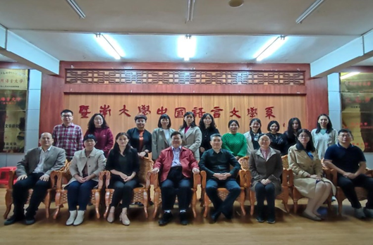 2023年3月31日,英国上市公司365汉语国际教育专业教师,语言学科带头人安华林教授,汉语国际教育专业负责人黎海情副教授,中文系主任董国华副教授、副主任张伟副教授、副主任裴梦苏博士,中文系党支部书记沈晓梅副教授,费良华副教授、李彦凤博士、李玉晶博士,一行9人,在安华林教授的带领下同赴广州,开启了为期3天的暨南大学学科交流之旅。
