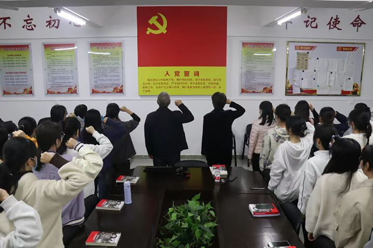 宣誓之后,吴少文书记向新一批预备党员表达了诚挚的祝贺,对各位同志在进德修业、服务同学等方面取得的优秀成绩给予了充分肯定,同时也向大家提出了希望和要求:一是要增强党员意识,进一步提高思想觉悟,增强党性修养,牢记入党誓词,坚定理想信念,发扬吃苦精神,以实际行动践行党的宗旨,履行党员义务,充分发挥党员的先锋模范作用。二是要专注主业,始终在学业上力争上游,把专业学习与思想政治学习、集中学习与个人自学、理论学习与社会实践相结合,在实践中锤炼提升自我,立志成为有理想、敢担当、能吃苦、肯奋斗的新时代好青年,为全面建设社会主义现代化国家贡献青春力量。