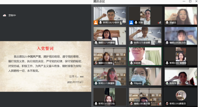 最后,为庆祝中国共产党成立一百周年,支部书记刘敏老师带领全体党员一起重温了入党誓词。