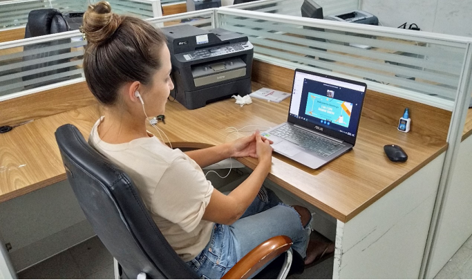 选手和职工进行线上教学